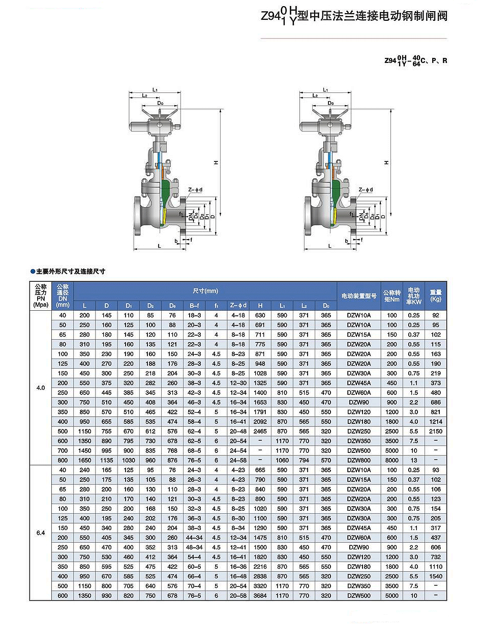 - Z940/1H/Y電動中壓法蘭連接閘閥