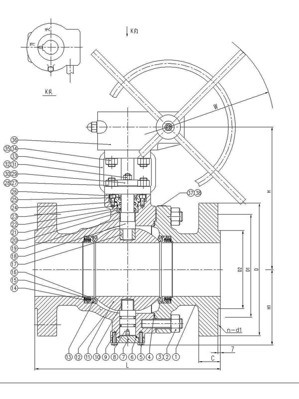 四、固定蝸輪球閥規(guī)格主要尺寸: