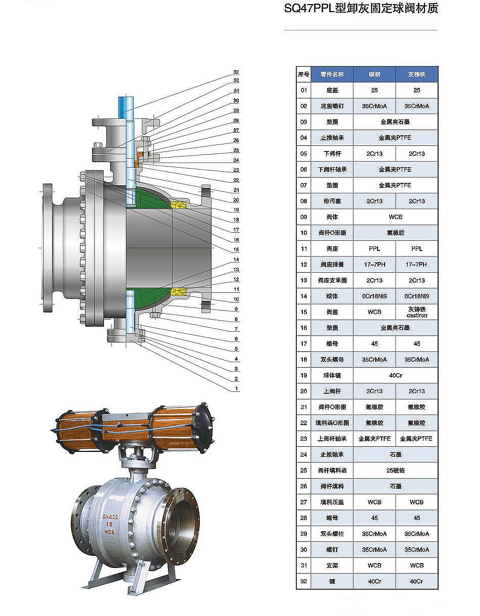 - SQ47PPL型卸灰固定球閥