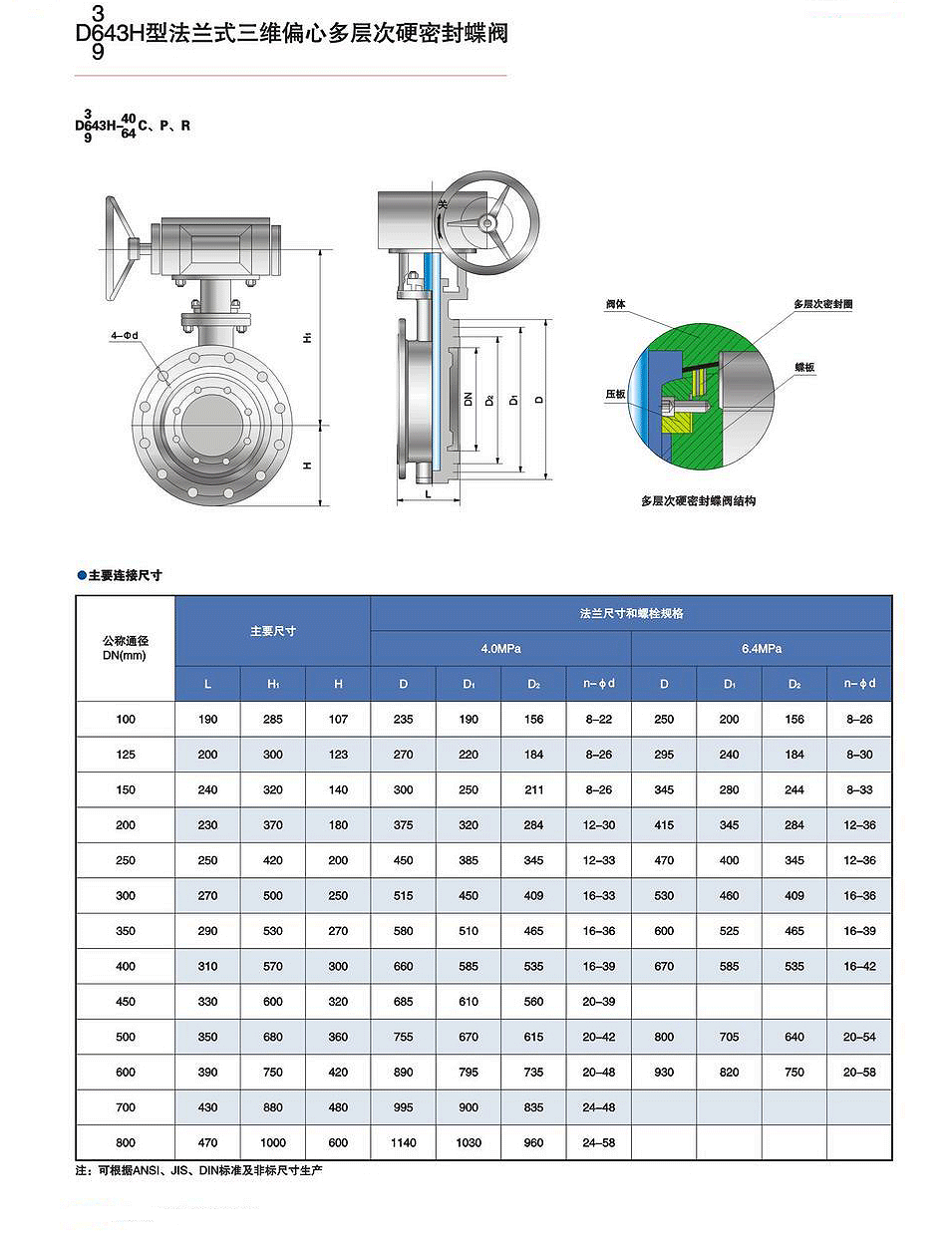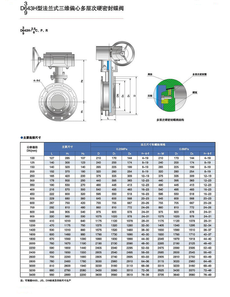 - D343H-16C/P/R法蘭三偏心多層次硬密封蝶閥