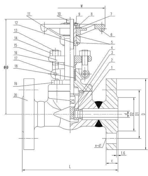 5.閥體材料:WCB、ZG1Cr18Ni9Ti、ZG1Cr18Ni12Mo2Ti、CF8(304)、CF3(304L)、CF8M(316)、CF3M(316L)、Ti。選用不同的材質(zhì),可分別適用于水、蒸汽、油品、硝酸、醋酸、氧化性介質(zhì)、尿素等多種介質(zhì)。